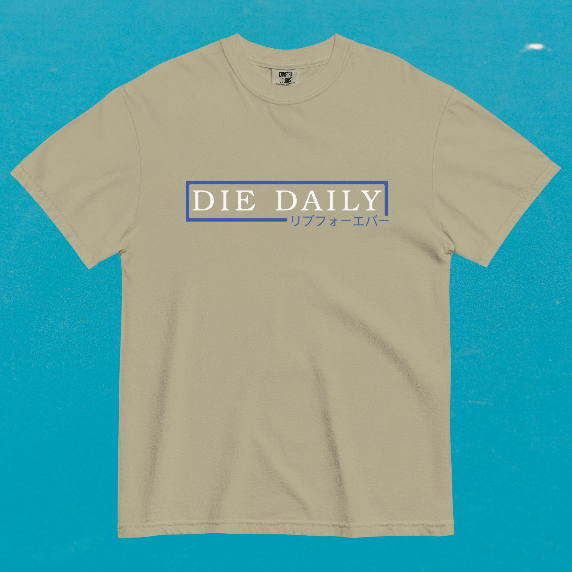 Classic die daily with Japanese print. All proceeds help fund trips to Japan to work with local churches and ministries. Printed on high quality comfort color tee in the USA.